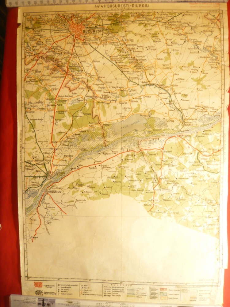 Harta Regiunii Bucuresti- Giurgiu , litografie 1928 , scara 1:300 000