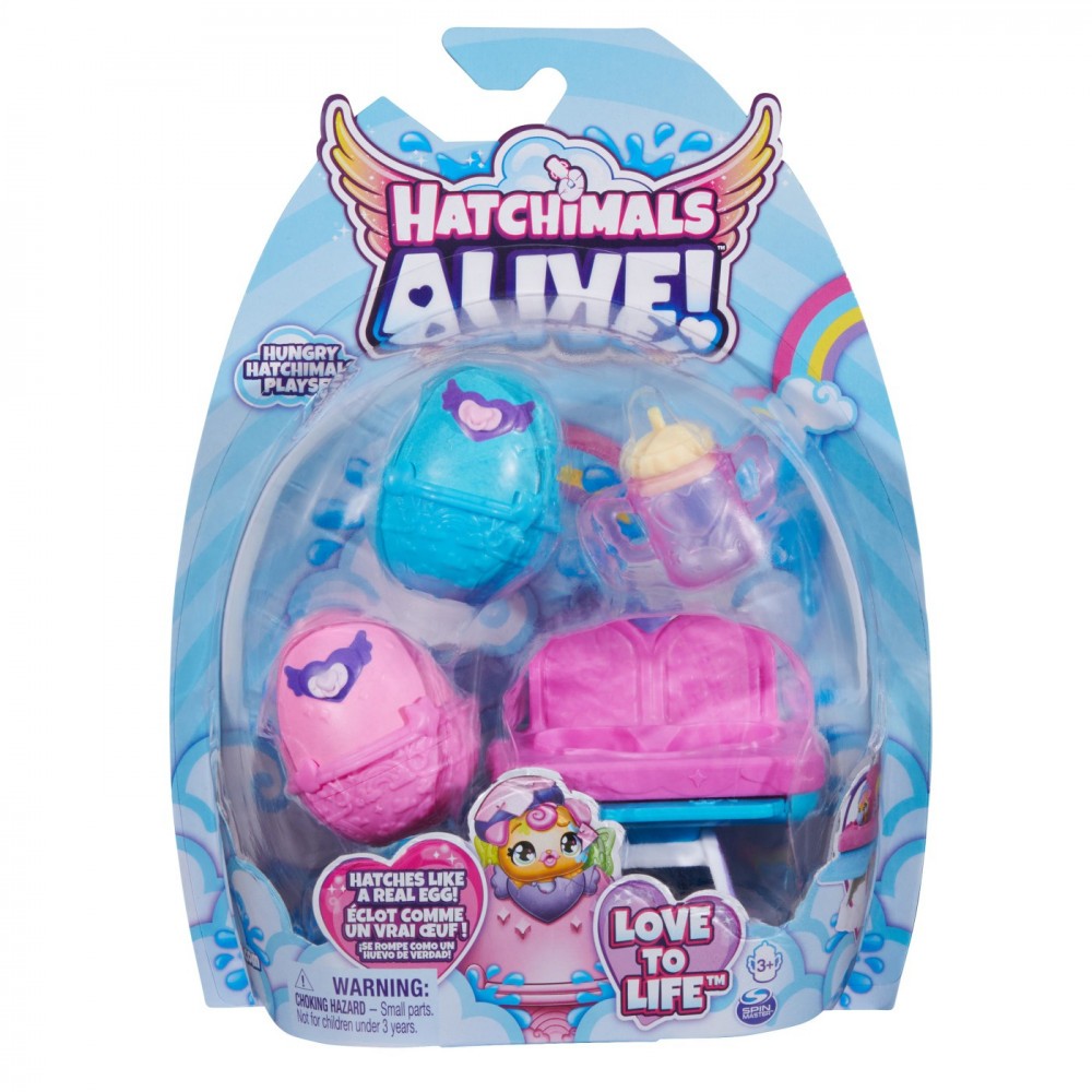 Cu dragoste si grija, poti aduce la viata, ca prin farmec, 2 personaje Hatchimals, intr-un mod cu totul nou! Aceste oua colorate surpriza eclozeaza ca niste oua adevarate! Pe cine vei ecloza? Îngrijeste ouale si incepe eclozarea prin hranirea acestora. Îndeparteaza suzetele, umple sticla cu apa, stoarce-o in fiecare ou Hatchimals si vei vedea cum prietenii tai incep sa iasa din oua! 2 Hatchimals, 1 scaun inalt, 3 accesorii si 1 foaie cu instructiuni!