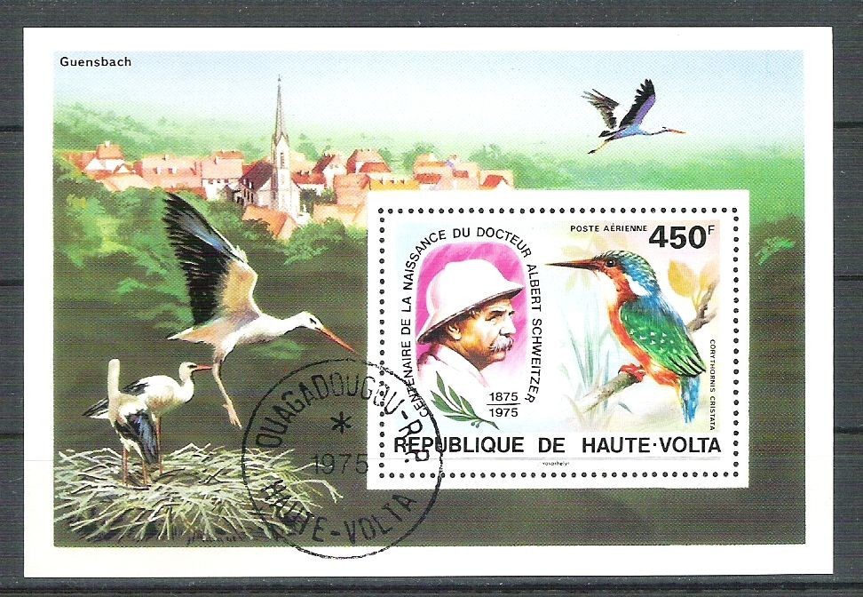 Haute Volta 1975 Birds, Albert Schweitzer, perf. sheet, used P.020