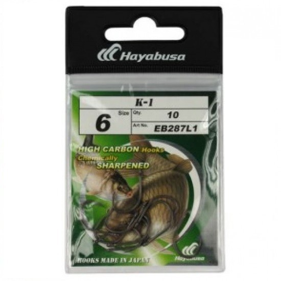 <p style="margin: 0px 0px 1em; padding: 0px; color: rgb(34, 34, 34); font-family: Arial, Helvetica, sans-serif; line-height: 18px; background-color: rgb(248, 248, 248);"><strong>Carlige HAYABUSA K1 reprezinta forma clasica a carligelor de crap, care au un varf ascutit, adus putin spre interior si foarte puternic.</strong></p> <p style="margin: 0px 0px 1em; padding: 0px; color: rgb(34, 34, 34); font-family: Arial, Helvetica, sans-serif; line-height: 18px; background-color: rgb(248, 248, 248);"><strong>Se preteaza multor monturi si prezentari, fiind foarte versatile.</strong></p> <p style="margin: 0px 0px 1em; padding: 0px; color: rgb(34, 34, 34); font-family: Arial, Helvetica, sans-serif; line-height: 18px; background-color: rgb(248, 248, 248);"><strong>Sunt construite din otel-carbon 80, material rezultat dintr-un proces de inalta tehnologie de fabricatie, ce asigura carligului o rezistenta sporita.</strong></p> <p style="margin: 0px 0px 1em; padding: 0px; color: rgb(34, 34, 34); font-family: Arial, Helvetica, sans-serif; line-height: 18px; background-color: rgb(248, 248, 248);"><strong>Varful este ascutit electrochimic pentru o mai buna penetrare.</strong></p>