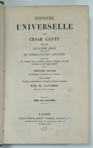 HISTOIRE UNIVERSELLE par CESAR CANTU , TOME DIX - SEPTIEME , 1862