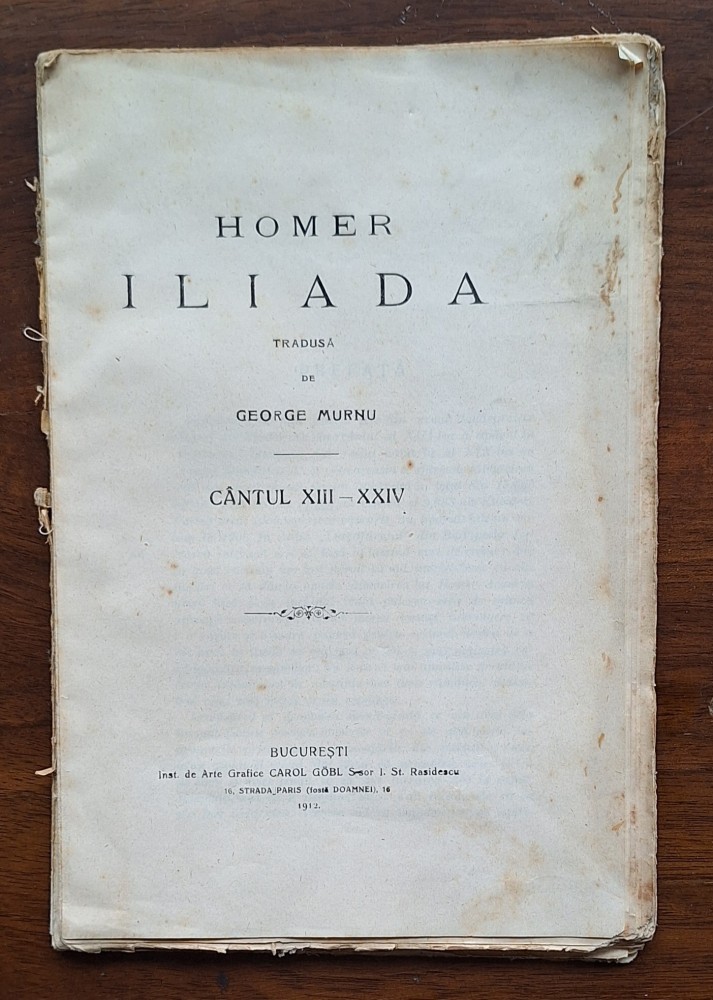 Homer – Iliada, Cântul XIII–XXIV (trad. George Murnu), ediție Carol Göbl, București 1912