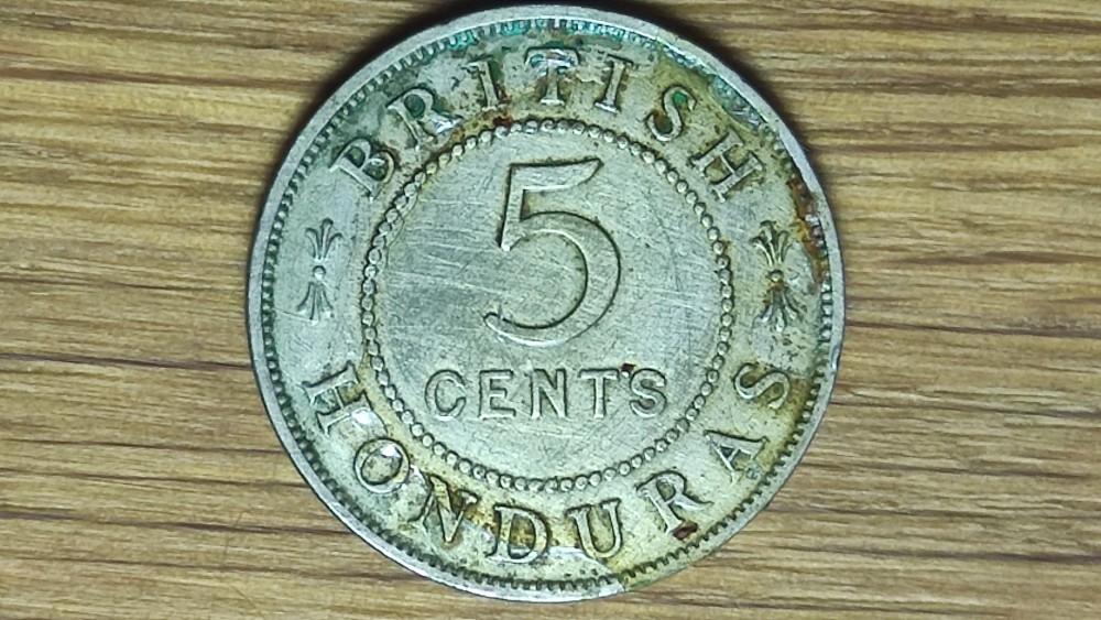 Honduras Britanic ante Belize - moneda coloniala ultra rara - 5 cents 1919 - George V - tiraj 20k - protejata cu zapon lack pe revers