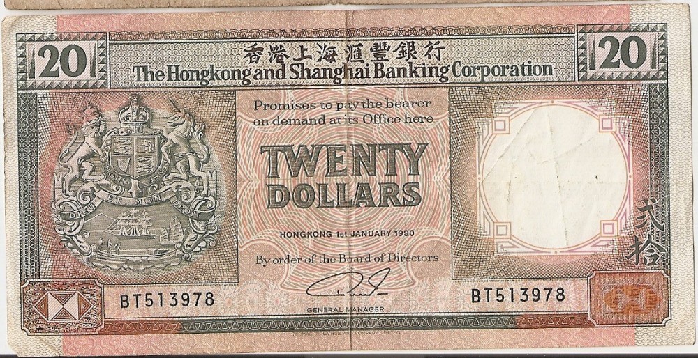 HONG KONG 20 DOLLARS DOLARI HSBC 1990 VF