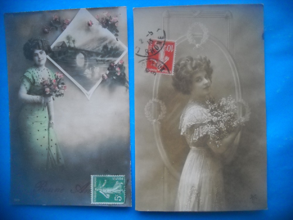 HOPCT 1695 FEMEI..FEMEI-TCV-ROMANTICA-FRANTA-LOT 2 CARTI POSTALE VECHI-CIRCULATE