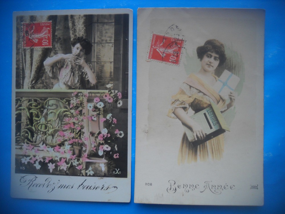HOPCT 1713 FEMEI..FEMEI-TCV-ROMANTICA-FRANTA-LOT 2 CARTI POSTALE VECHI-CIRCULATE