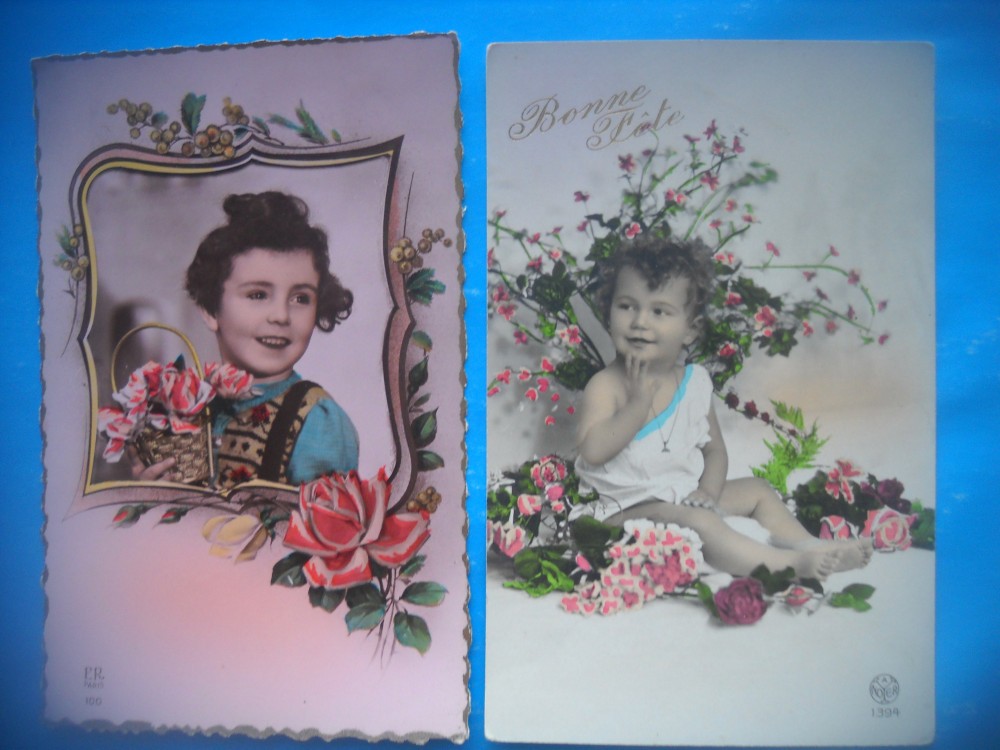 HOPCT 1837 COPII-ROMANTICA-FRANTA-LOT 2 CARTI POSTALE VECHI-CIRCULATE