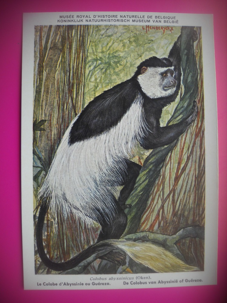HOPCT 6223 COLOB-COLOBUS ABYSSINICUS -MAIMUTE-FAUNA AFRICA-CP CHROMO LITHO -MUZEUL REGAL STIINTE NATURALE BELGIA-NECIRCULATA
