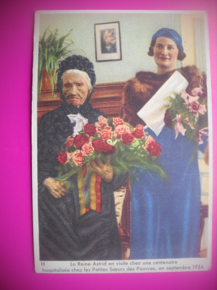 HOPCT 6407 IN VIZITA LA O FEMEIE CENTENARA -SPITALUL SARACILOR -1934-REGINA ASTRID-FAMILIA REGALA BELGIA-CROMO LITHO-CIOCOLATA COTE D'OR