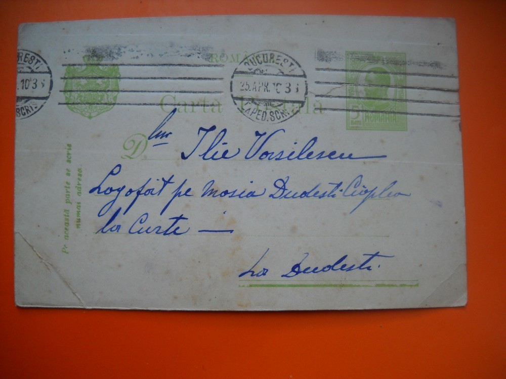 HOPCT CARTE POSTALA NR 514 G - BUCURESTI 1910 -STAMPILOGRAFIE -CIRCULATA
