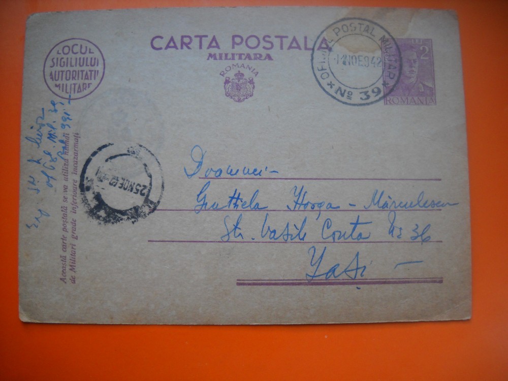 HOPCT CARTE POSTALA NR 515 A CP MILITARA - ANUL 1942 / TIMBRUL FIX REGELE MIHAI -STAMPILOGRAFIE -CIRCULATA