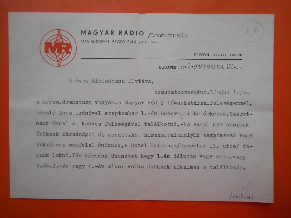HOPCT DOCUMENT VECHI 1 A UNGARIA MAGYAR RADIO BUDAPESTA 1975- LIMBA MAGHIARA
