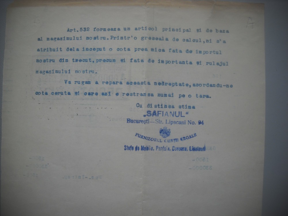 HOPCT DOCUMENT VECHI 345 SOC. SOFIANUL FURNIZORUL CURTII REGALE/BUCURESTI 1936