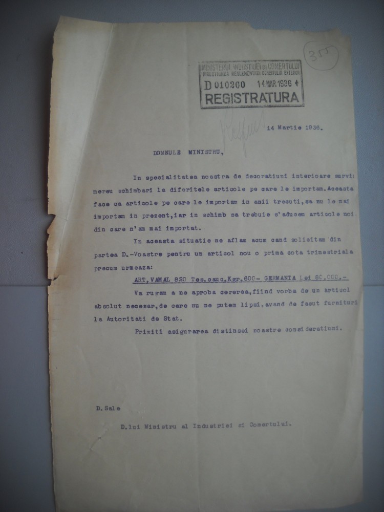 HOPCT DOCUMENT VECHI 355 MINISTERUL INDUSTRIEI COMERT EXTERIOR /BUCURESTI 1936