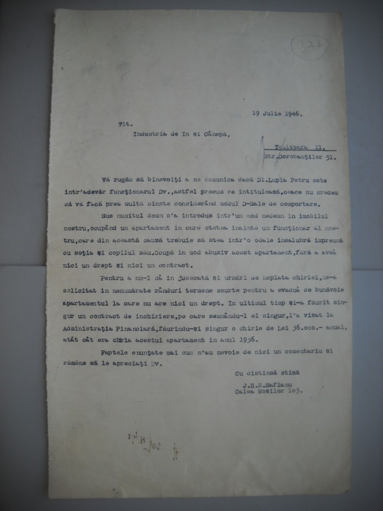 HOPCT DOCUMENT VECHI 377 ISIDORE H BERGER SAFIANU [ EVREU] BUCURESTI 1946