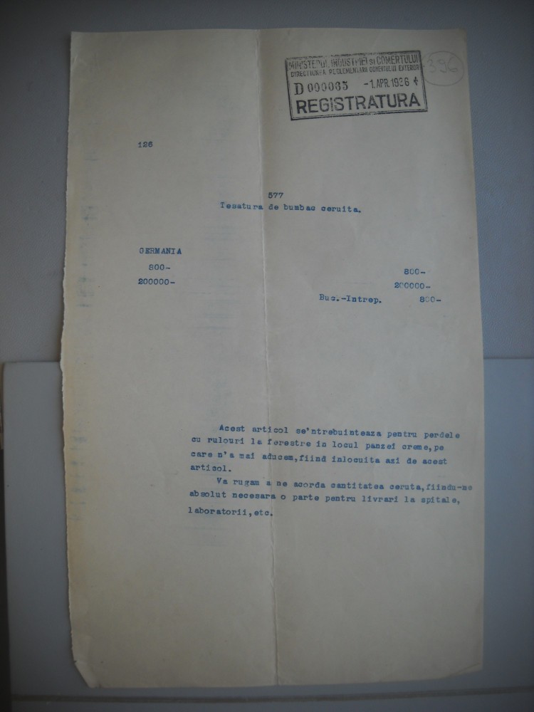 HOPCT DOCUMENT VECHI 396 MINISTERUL INDUSTRIEI COMERT EXTERIOR /BUCURESTI 1936