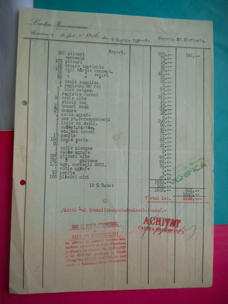 HOPCT DOCUMENT VECHI FISCALIZAT NR 214 CARTEA ROMANEASCA -BUCURESTI 1931