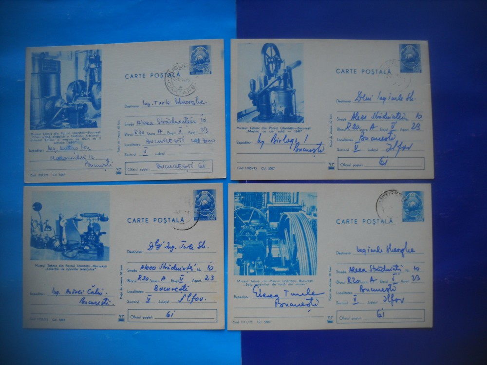 HOPCT LOT 2064 -IP MUZEUL TEHNIC BUCURESTI -4 CARTI POSTALE-CIRCULATE