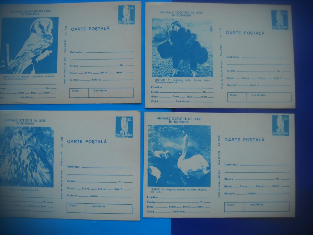 HOPCT LOT NR 1040 ANIMALE OCROTITE IN ROMANIA-PASARI-4 CARTI POSTALE-NECIRCULATE