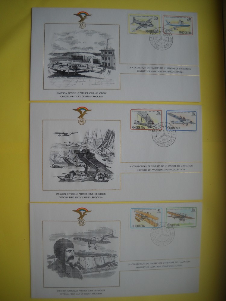 HOPCT PLIC FDC S NR 1006 SET 3 FDC- RHODEZIA AFRICA -ISTORIA AVIATIEI -FAI -FEDERATIA AERONAUTICA INTERNATIONALA 1978-AVION / AVIATIE