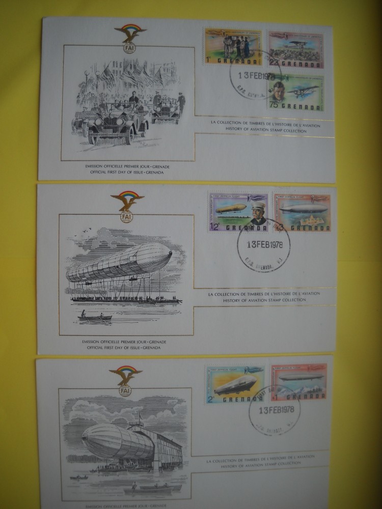 HOPCT PLIC FDC S NR 1025 SET 3 FDC GRENADA -ISTORIA AVIATIEI -FAI -FEDERATIA AERONAUTICA INTERNATIONALA 1978-AVION / AVIATIE