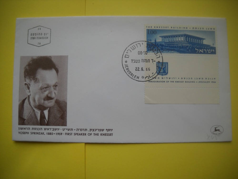 HOPCT PLIC FDC S NR 180 YOSEPH SPRINZAK 1885-1959 PRIMUL SPIKER KNESSET 1966 -ISRAEL