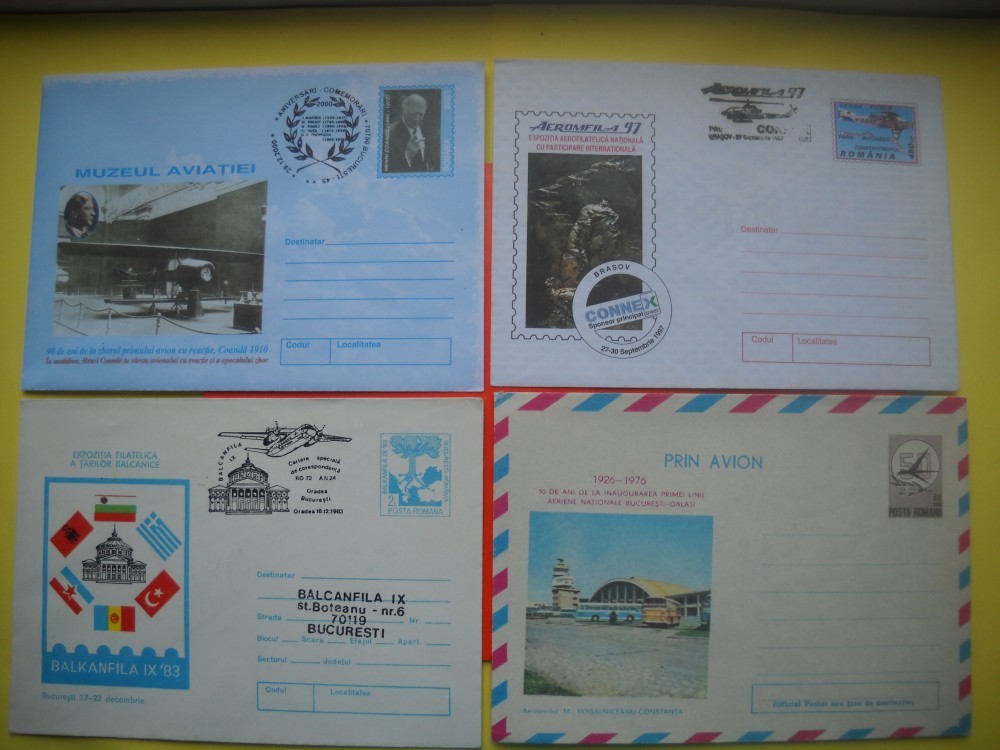 HOPCT PLIC NR 632 SET 4 PLICURI AVIOANE STAMPILOGRAFIE DIVERSA -AVION/AVIATIE -ROMANIA-