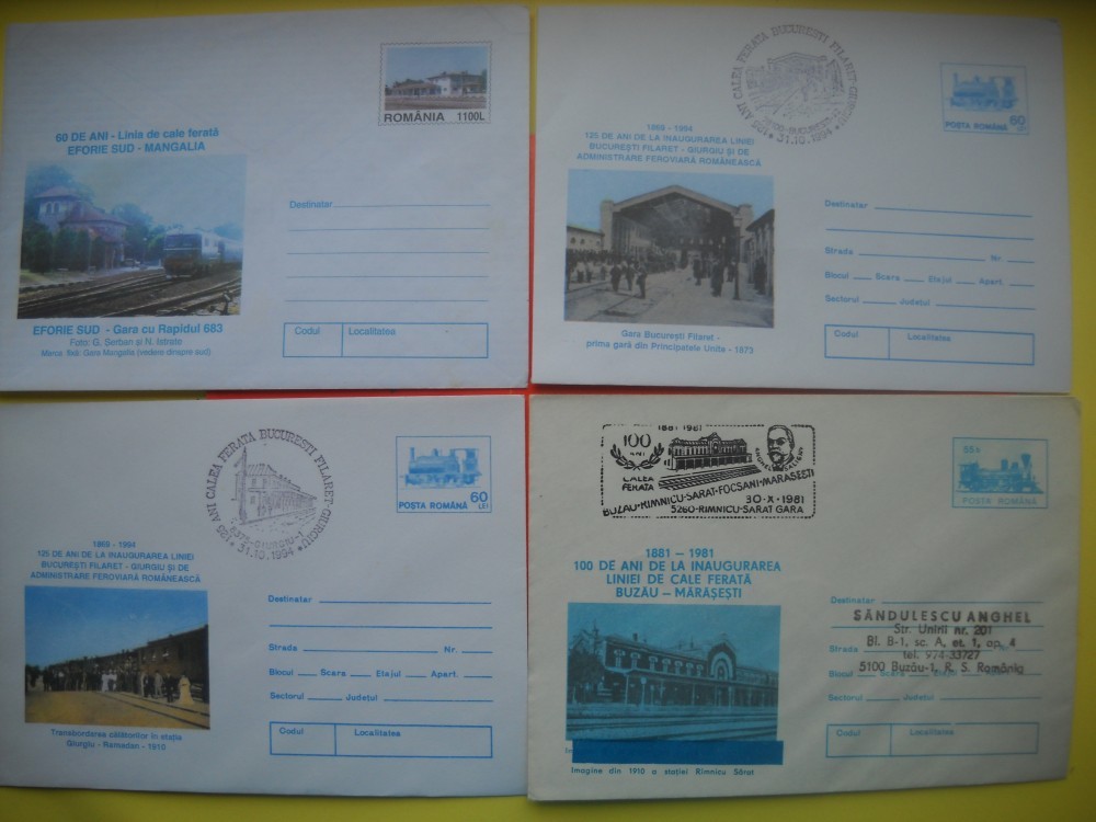 HOPCT PLIC NR 638 SET 4 PLICURI GARI DIN -ROMANIA-TREN