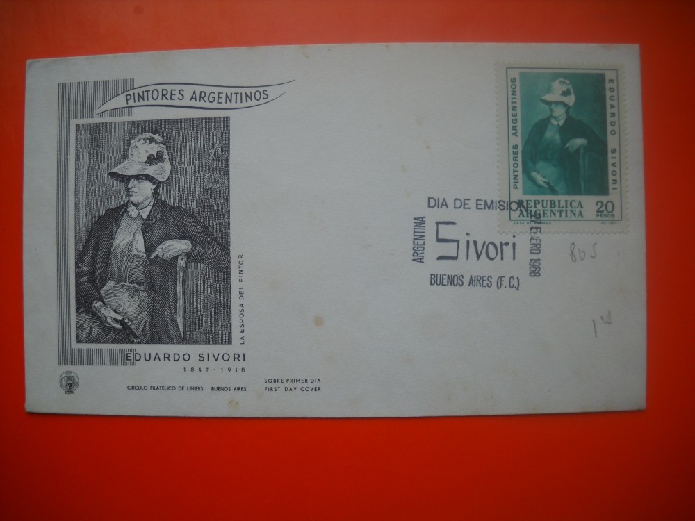 HOPCT PLIC S FDC NR 672 PICTORUL EDUARDO SIVORI 1847-1918-...1968 -ARGENTINA -NECIRCULAT