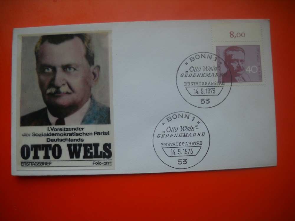 HOPCT PLIC S FDC NR 722 OTTO WELS -SOCIAL DEMOCRAT -BONN -1973 GERMANIA -NECIRCULAT