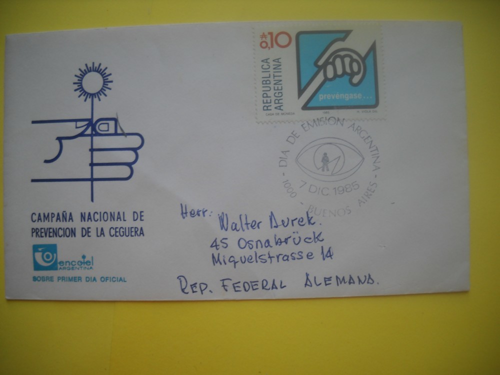 HOPCT PLIC S FDC NR 834 CAMPANIA NATIONALA DE PREVENTIE A ORBIRII -NEVAZATORI- 1985 -ARGENTINA -CIRCULAT