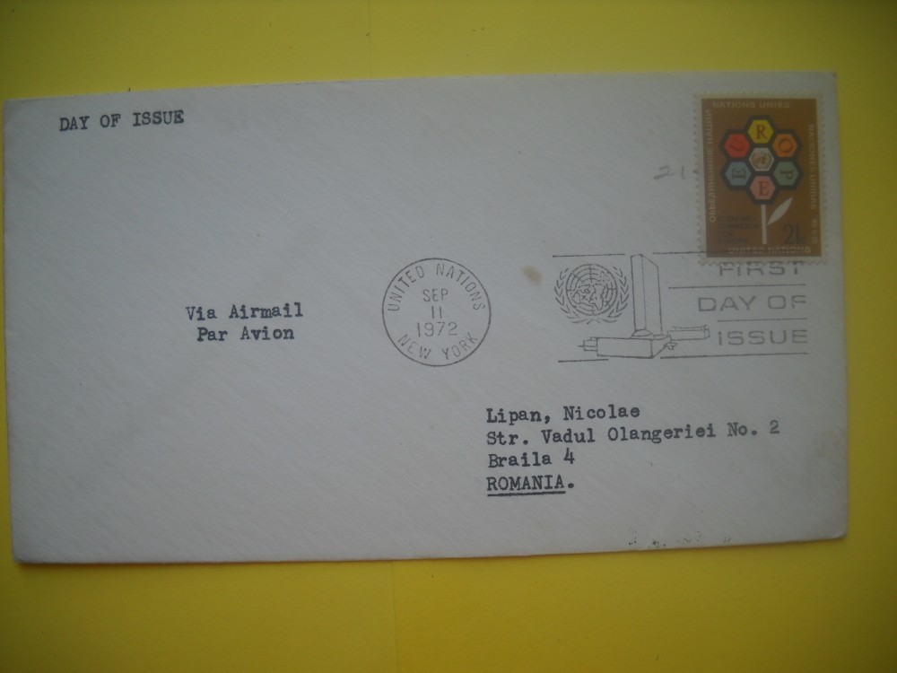 HOPCT PLIC S FDC NR 871 ONU NATIUNILE UNITE COMISIA ECONOMICA PENTRU EUROPA 1972 -CIRCULAT
