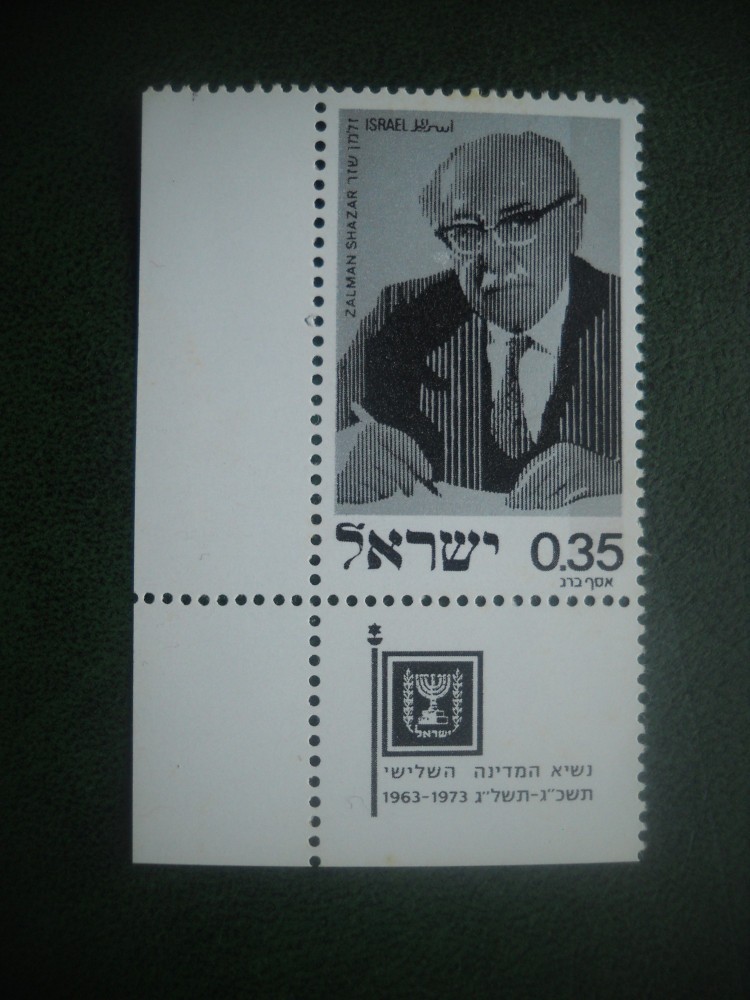 HOPCT TIMBRE MNH 847 ZALMAN SHAZAR 1975 -1 VAL CU TABS ISRAEL