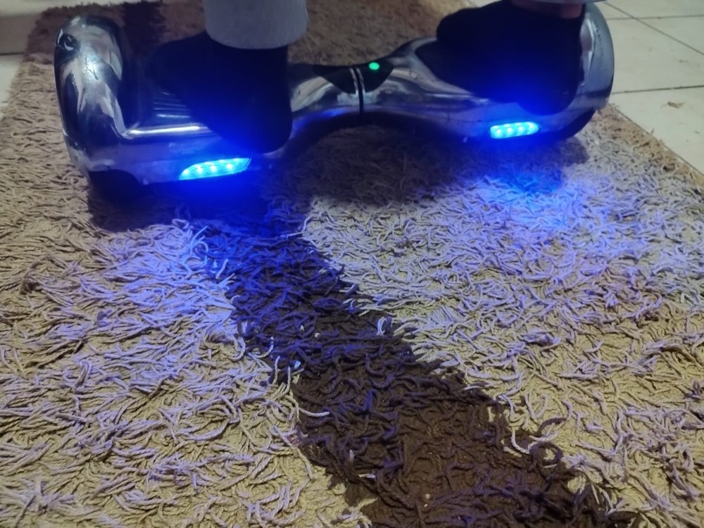 Hoverboard-ul este folosit, are carcasa cu zgarieturi, dar merge