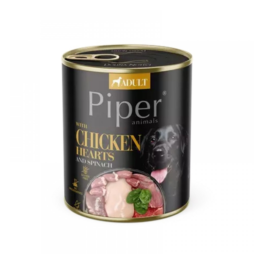 Hrana umeda pentru caini, Piper adult cu inimi de pui si spanac, 800 gr