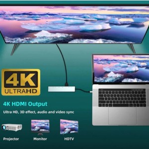 - HDMI 4K30Hz: poti extinde ecranul sau conecta laptopul la un monitor sau televizor cu rezolutie 4K la 30Hz. Este perfecta pentru prezentari, vizionarea de continut 4K sau pentru marirea spatiului de lucru.