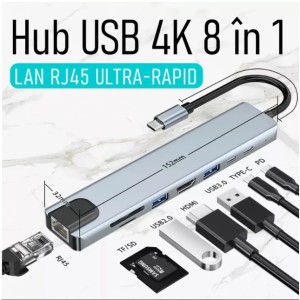 Hub-ul USB-C adaptor 8 in 1 este solutia completa pentru toate nevoile tale de conectivitate atunci cand folosesti un laptop sau alt dispozitiv cu porturi limitate.
