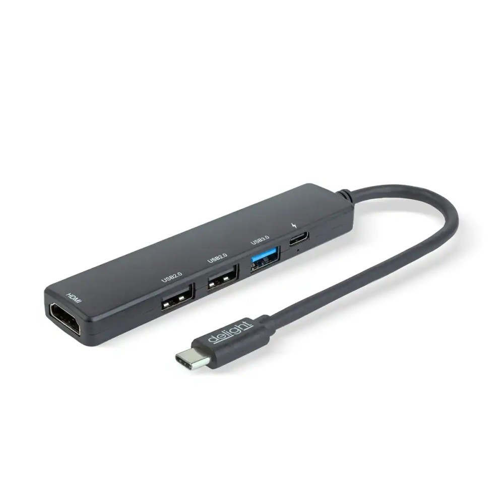 Hub USB multifunctional Delight HDMI + USB Type-C 3.0 + 3x USB-A /1x USB Type-C 5Gbps 100W negru 55064