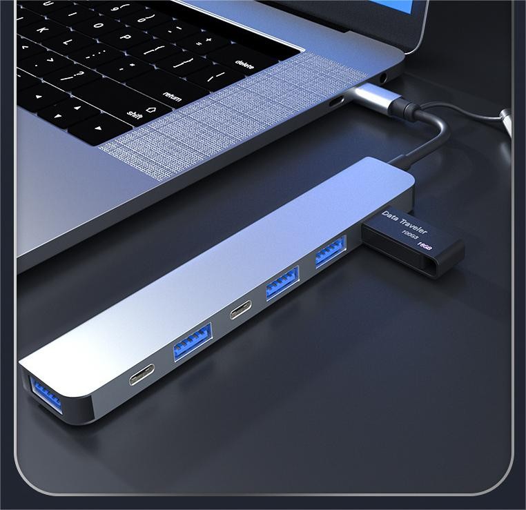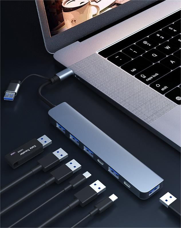 Acest HUB multifunctional iti transforma portul USB/USB-C intr-un total de 7 porturi diverse, inclusiv: