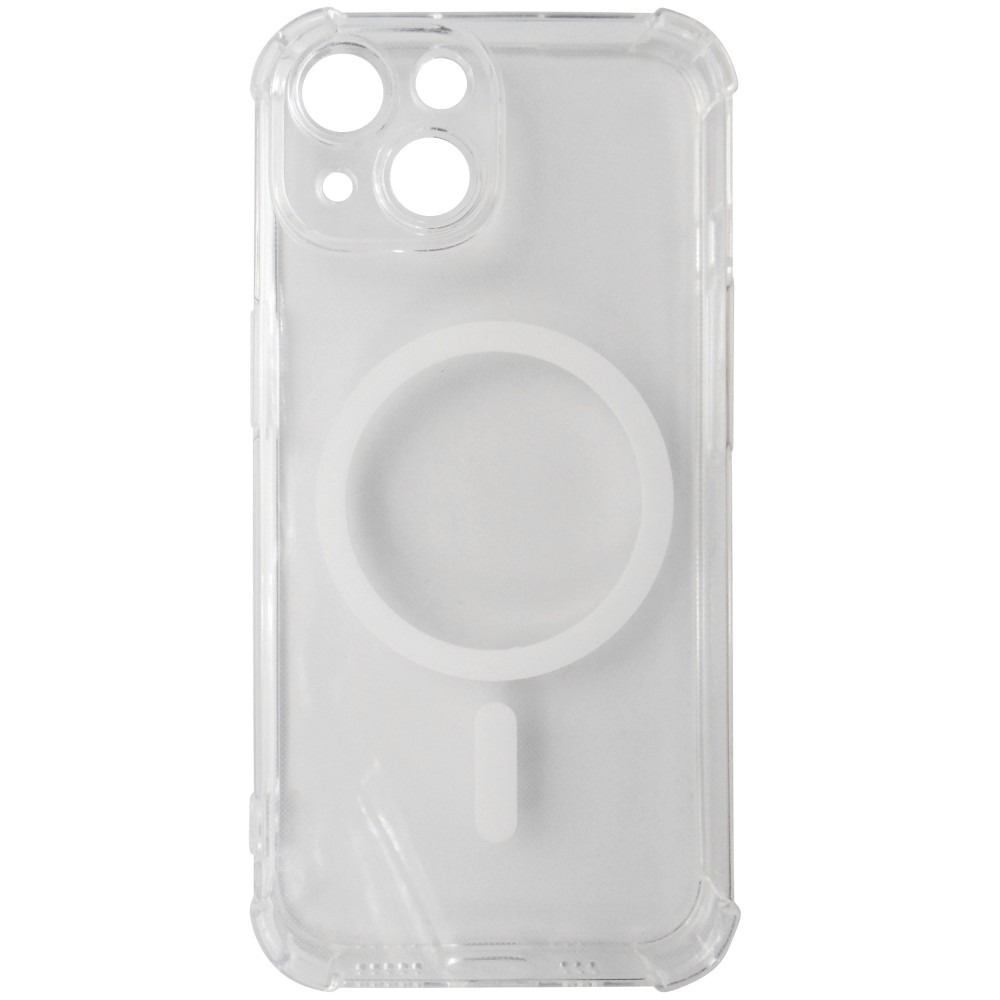 Husă spate silicon transparent cu alb, magnet, colțuri întărite, pentru Apple iPhone 15