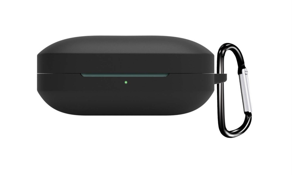 Husa din silicon, THD, compatibila cu castile wireless OnePlus Buds Pro 2, carabina inclusa, neagra