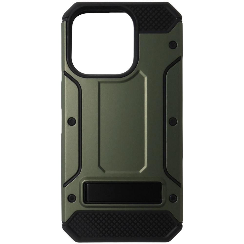 Husa Hybrid Armor cu stand, plastic kaki cu TPU negru pentru Apple iPhone 15 Pro
