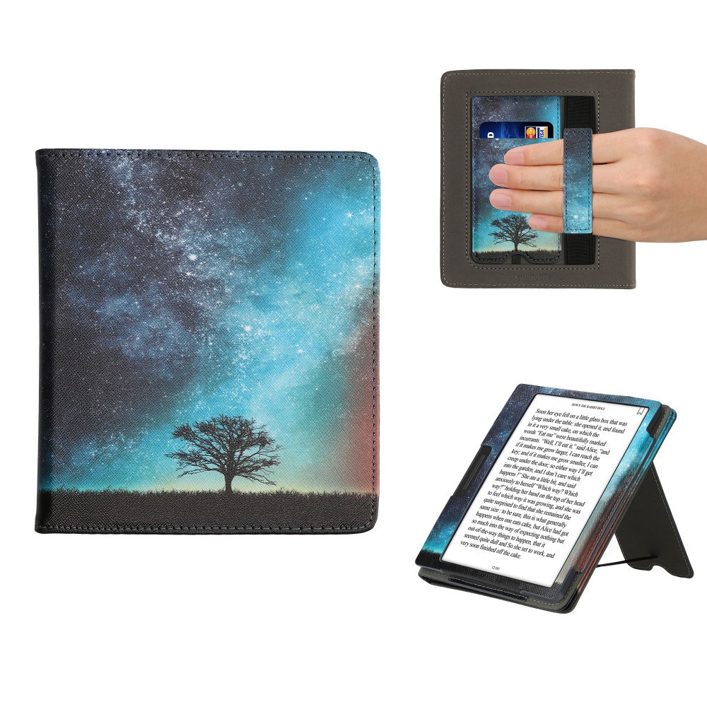 - ASPECT DE PIELE: Husa eReader cu design de natura cosmica este realizata din piele sintetica durabila si rezistenta pentru un aspect clasic