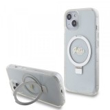 Husa MagSafe pentru Apple iPhone 15 Plus, Guess, Ring Stand Script Glitter, Mov