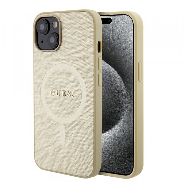 Husa MagSafe pentru Apple iPhone 15 Plus, Guess, Saffiano, AurieHusa MagSafe pentru Apple iPhone 15 Plus, Guess, Saffiano, AurieApple