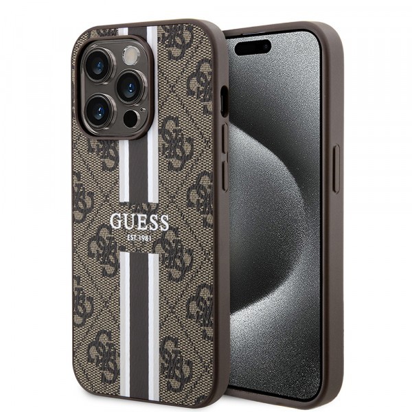 Husa MagSafe pentru Apple iPhone 15 Pro Max, Guess, 4G Printed Stripes, Maro