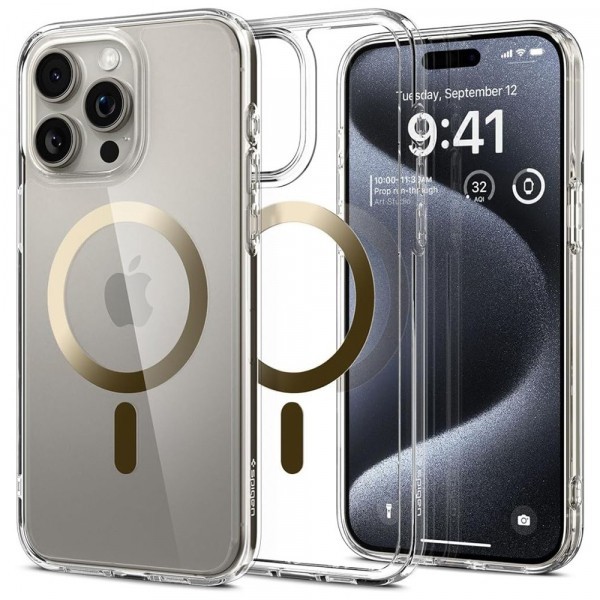 Husa MagSafe pentru Apple iPhone 15 Pro Max, Spigen, Ultra Hybrid, Aurie