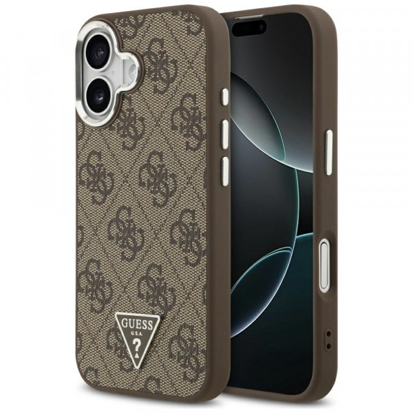 Husa MagSafe pentru Apple iPhone 17, Guess, 4G Triangle Logo, Maro Argintie