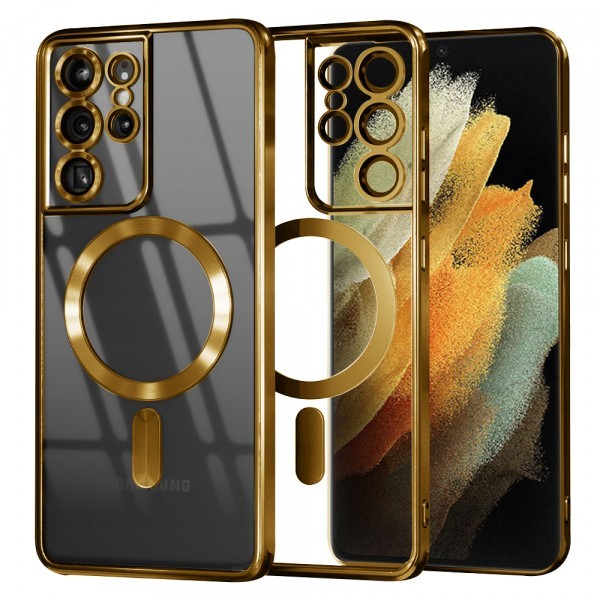 Husa MagSafe pentru Samsung Galaxy S21 Ultra 5G G998, Techsuit, Luxury Crystal, Aurie
