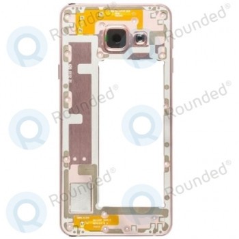 Samsung Galaxy A3 2016 (SM-A310F) Capac mijloc roz Capac mijloc, carcasă mijloc, șasiu mijloc. Incl. fereastra camerei, obiectivul camerei, fereastra lanternei, taste laterale, modul difuzor, modul antenă. Model(e): Samsung Galaxy A3 2016 (SM-A310F)
